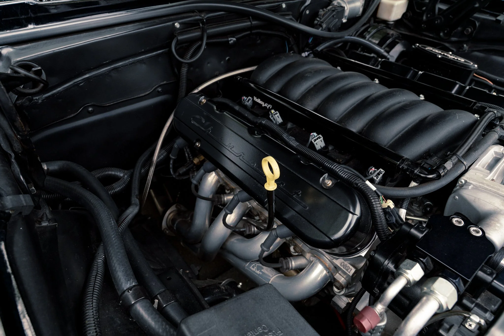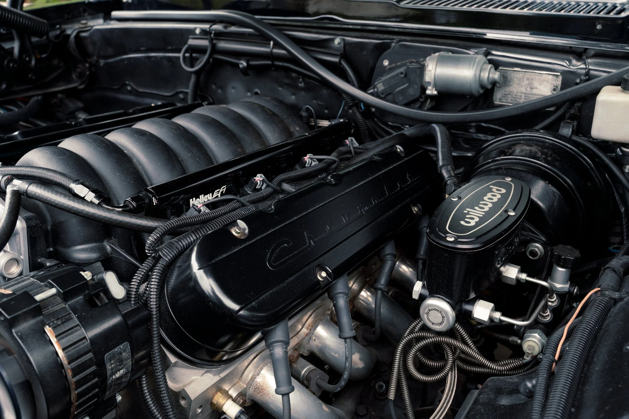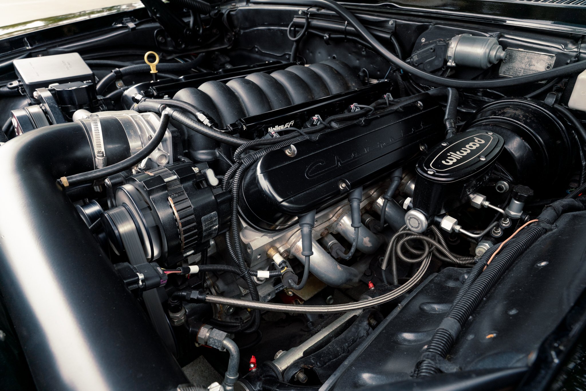 At its heart sits a robust 6.2-liter LS376 GM Performance V8 paired with a Tremec TKO600 five-speed manual and a Moser Musclepak 12-bolt rear end with 3.31 gears, delivering strong, usable power and mechanical engagement for drivers who appreciate analog control. The drivetrain is dressed with performance-oriented components—including adjustable QA1 coilovers, tubular front control arms, a Heidts four-link rear setup, and big-stopping Wilwood brakes—ensuring the chassis matches the engine’s torque with composed handling and confidence-inspiring grip.