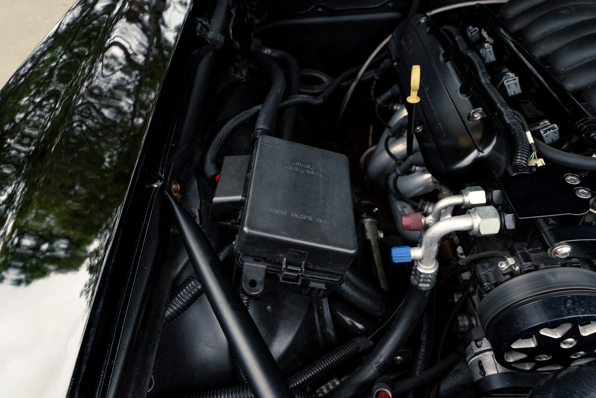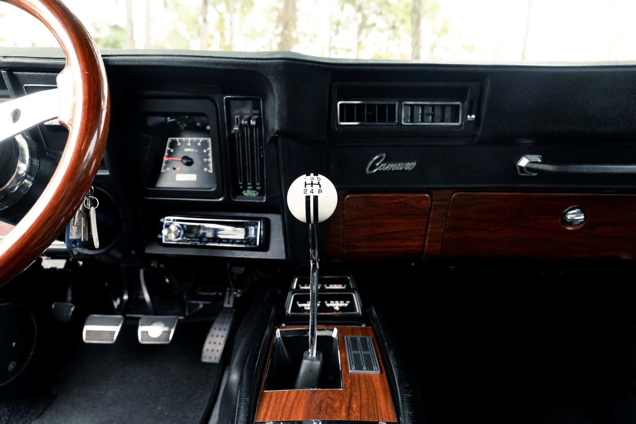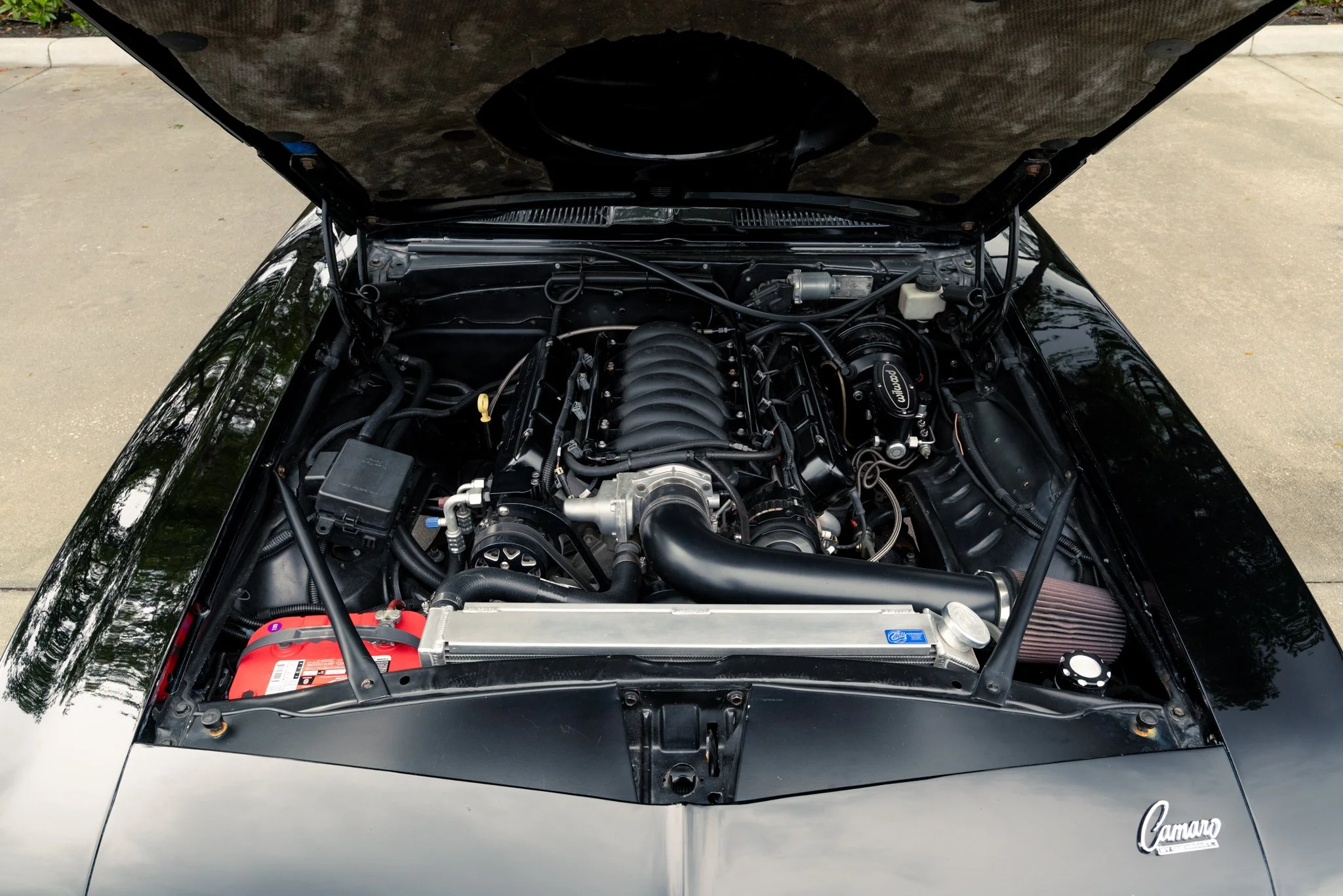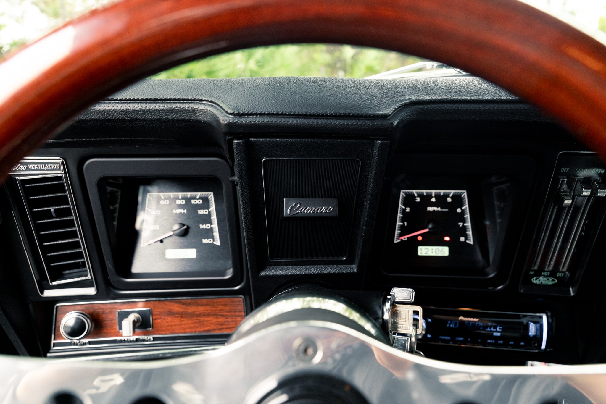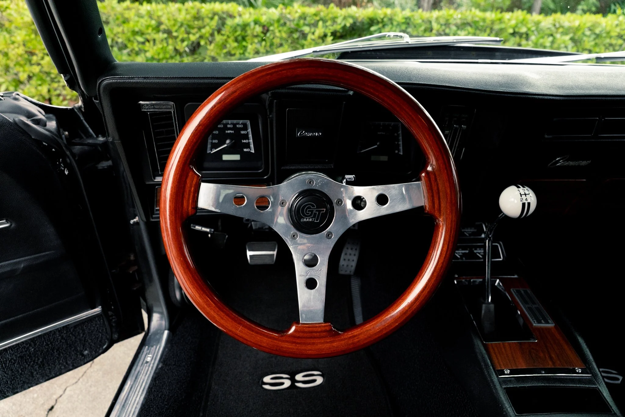 Finished in a bold Tuxedo Black with SS-style details, hideaway headlights, and a subtle rear spoiler, this Camaro’s exterior marries classic design with modern touches. Inside, the cabin blends comfort and performance with custom upholstery, Vintage Air climate control, a Pioneer sound system with subwoofer, and Dakota Digital instruments for a driver-focused experience that feels at home on both cruise nights and spirited drives.