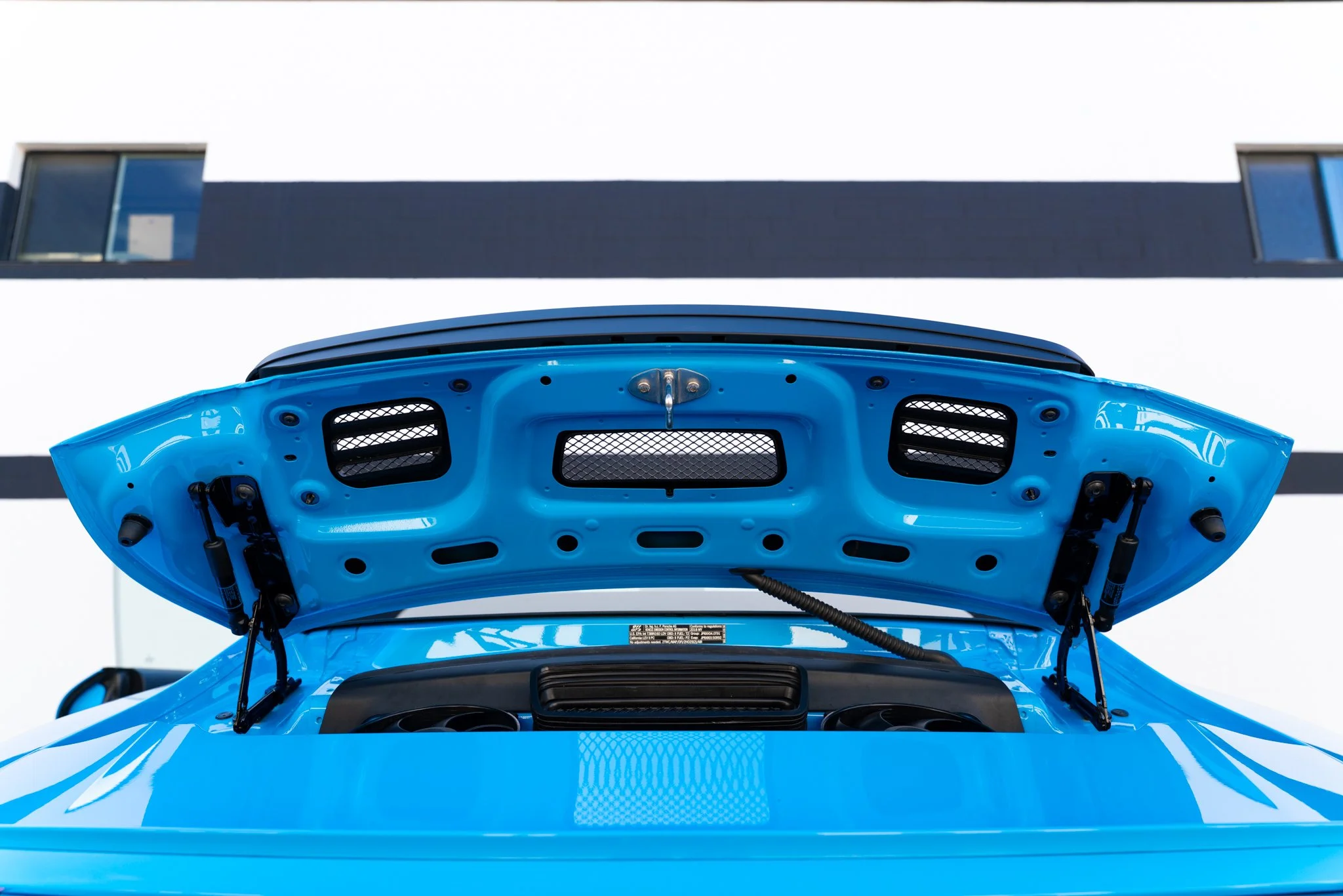 Defined by subtlety, purity, and motorsport pedigree, this 2018 Porsche 911 GT3 offers a compelling interpretation of the 991.2 platform through a thoughtfully executed Touring-style conversion. Finished in striking Paint-to-Sample Riviera Blue, the car sheds the traditional fixed rear wing in favor of a Touring decklid, creating a cleaner, more understated silhouette that pays homage to Porsche’s most driver-focused grand touring ethos. Completed in 2020, the conversion went beyond cosmetic changes, incorporating the correct supporting components—including revisions to the wiring harness and airbox—to ensure factory-level integration and functionality.